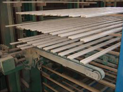 巾200mm 厚30m 長さ 4200mmまでの製品に塗装することが可能で主に内部造作材のドア枠・窓枠はもちろんのこと、巾木・廻り縁などのモールディングなどの長尺物の量産に優れております。