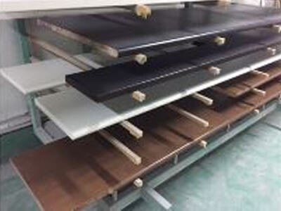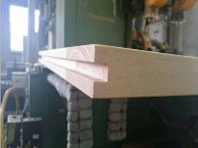 その上にこの印刷機で木目及び導管を転写エンボスし、カラーリング塗装仕上げをすることにより、より本物に近いムクの製品に見えるようになります。
